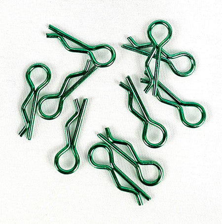 Call us at +1 (681) 217-2032 and ask for next availibility1/16 Bent Body Clip Green. These measure approximately 11/16" long. (10 pack)