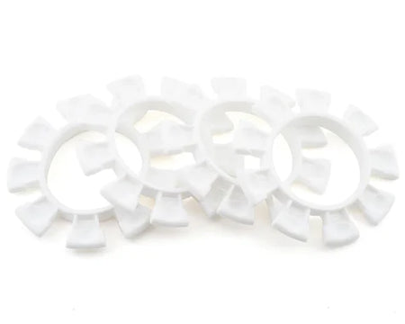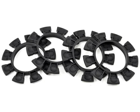 This is a pack of four black JConcepts "Satellite" Tire Glue Bands. JConcepts has reinvented the tire mounting rubber band. A uniquely molded design, specifically developed for tire mounting, the rubber band is produced in a high-elasticity material capable of stretching to a full assortment of different sized tires. Finely detailed array of handles are designed to ergonomically conform to your fingers so the user can deftly adjust the rubber band to the sidewall of each tire to apply the pressure where it is needed.