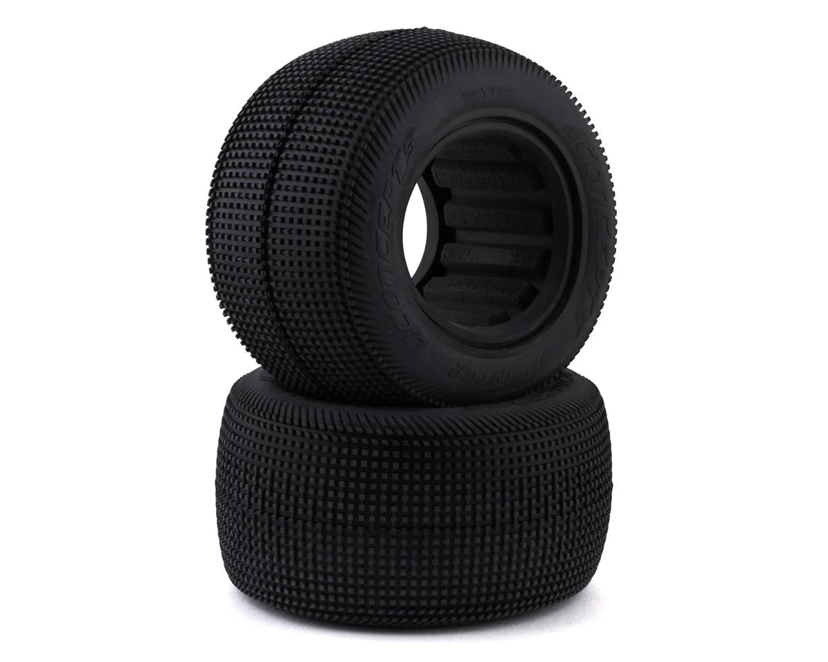 Call us at +1 (681) 217-2032 and ask for next availibilityJConcepts Sprinter 2.2" Truck Tires are designed to bridge a gap between the popular Double Dees and other pin tire options from JConcepts. The Sprinter tire has square, angled pins that are stacked vertically to flex and fold evenly across the tire. Typically, a stacked tread will wear less and provide more forward bite while the aligned space helps rotation in the turns and gives a snappy release to square up quickly. Starting with the tread, the team focused on durability and performance to bring a rear tire option to market that competes on loose surfaces which are wet or dusty.