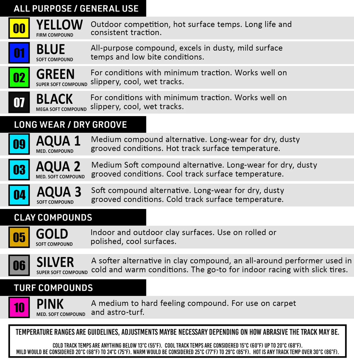 With the popularity of off-road racing, vehicles being designed with either mid-motor or laydown transmission options, a new generation pin style, carcass and outer tread design was needed. The outer sidewall of the tire has angled pins incorporated into the design to help release the turn and provide the rotation not only needed in dirt off-road but specifically in dirt-oval racing. The blended tread to tire body is supported with a generous radius which promotes “pin snap” and resists tearing or separation.