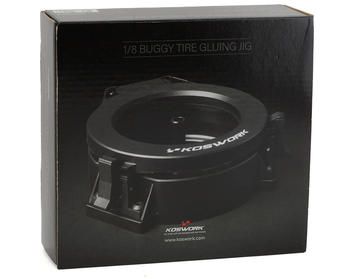 Call us at +1 (681) 217-2032 and ask for next availibilityThe Koswork 1/8 Buggy Tire Gluing Jig is designed to provide you with a professional looking glue job every time! Made from a durable molded composite, this gluing jig firmly holds the tire in place to reveal the bead to be glued. The simple, efficient design makes it easy to repeat the same clean looks with every tire.