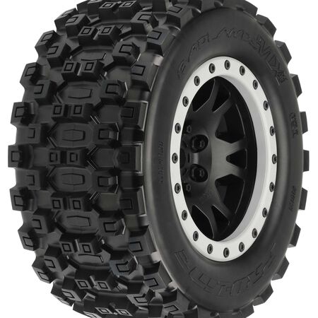 Call us at +1 (681) 217-2032 and ask for next availibilityBadlands MX43 Pro-Loc All Terrain Tires Mounted on Impulse Pro-Loc Black 24mm Wheels (2) with Stone Gray Rings for X-MAXX® Front or Rear