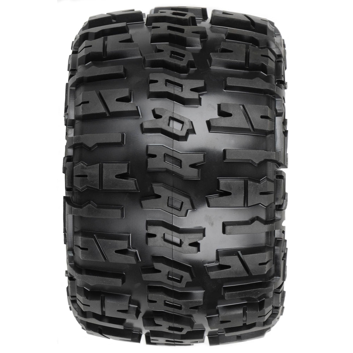 This is a pair of pre-mounted Trencher X 3.8" All Terrain Truck Tires. Leave a mark with your Monster Truck wherever you are with Pro-Line's Trencher X tires. The Trencher X tires are designed to give your MT optimal traction on just about any surface. Super cool horizontal H shaped treads give your MT ridiculous amounts of forward bite. With tread height at 1/4" tall, you'll find that durability and longevity are second to none.