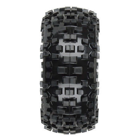 This is a pair of pre-mounted Badlands All-Terrain Short Course Tires. Are you ready to chew up the dirt and spit it out in a huge spray behind your SC truck? If so, then the Badlands SC tire is exactly the tire that you have been waiting for. The Badlands SC tire offers motocross style tread with huge, long-lasting lugs giving it the looks and performance that have won over bashers all across the globe. The Badlands tread design is made for the die-hard motocrosser in you. Its oversized grass and dirt shredding lugs offer you the ultimate in performance under all-terrain type conditions. The lugs are designed to ensure longevity while spitting up the surface below. Made from soft yet durable M2 compound, the Badlands tire is poised for battle and ready to take your Short Course Truck to the next level of bashing heaven.