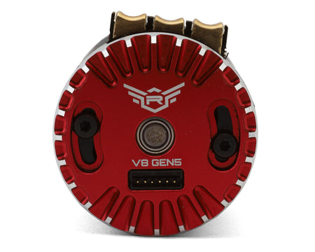REDS Gen5 V8 4-Pole 1/8 Competition Brushless Sensored Motor. Ideal for 1/8 buggy, truggy, GT, and on-road with four different kV options of 1900, 2200, 2400 and 2800, this Gen5 V8 motor features heavily improved efficiency, dual sensor design to make it suitable for every type of car layout, unmatched heat dissipation design with 20% temperature reduction compared to older versions, adjustable timing of ±10° allows for better engine tuning with exceptional power, smoothness and durability.