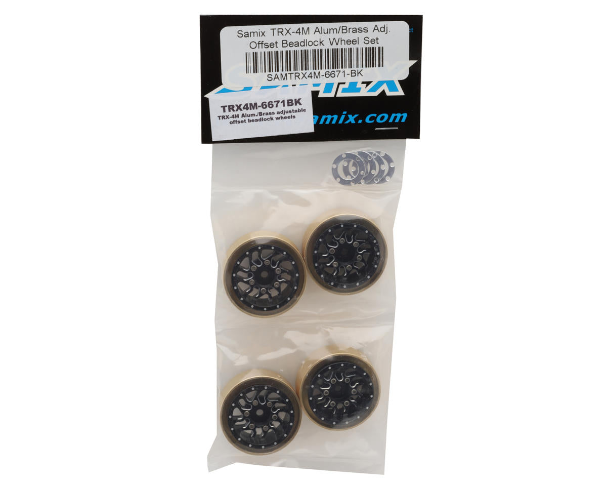 Samix Traxxas TRX-4M Aluminum/Brass Bead-lock Wheel Set (Black) (4) (35g) (Adj. Offset)