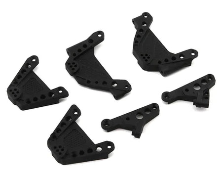 Replacement front and rear shock hoop set for the Axial SCX10 III. Package includes front and rear shock hoops, and two panhard mount brackets.