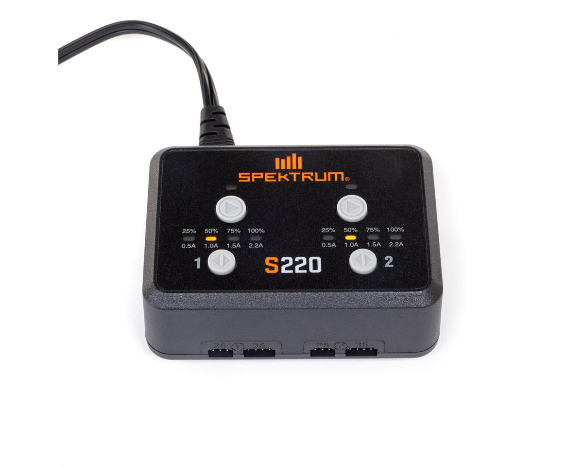 Charge smarter and faster with the Spektrum™ S220 AC Dual Battery Charger — compact, lightweight, and capable of balancing two LiPo batteries at once for hassle-free, efficient power on the go.