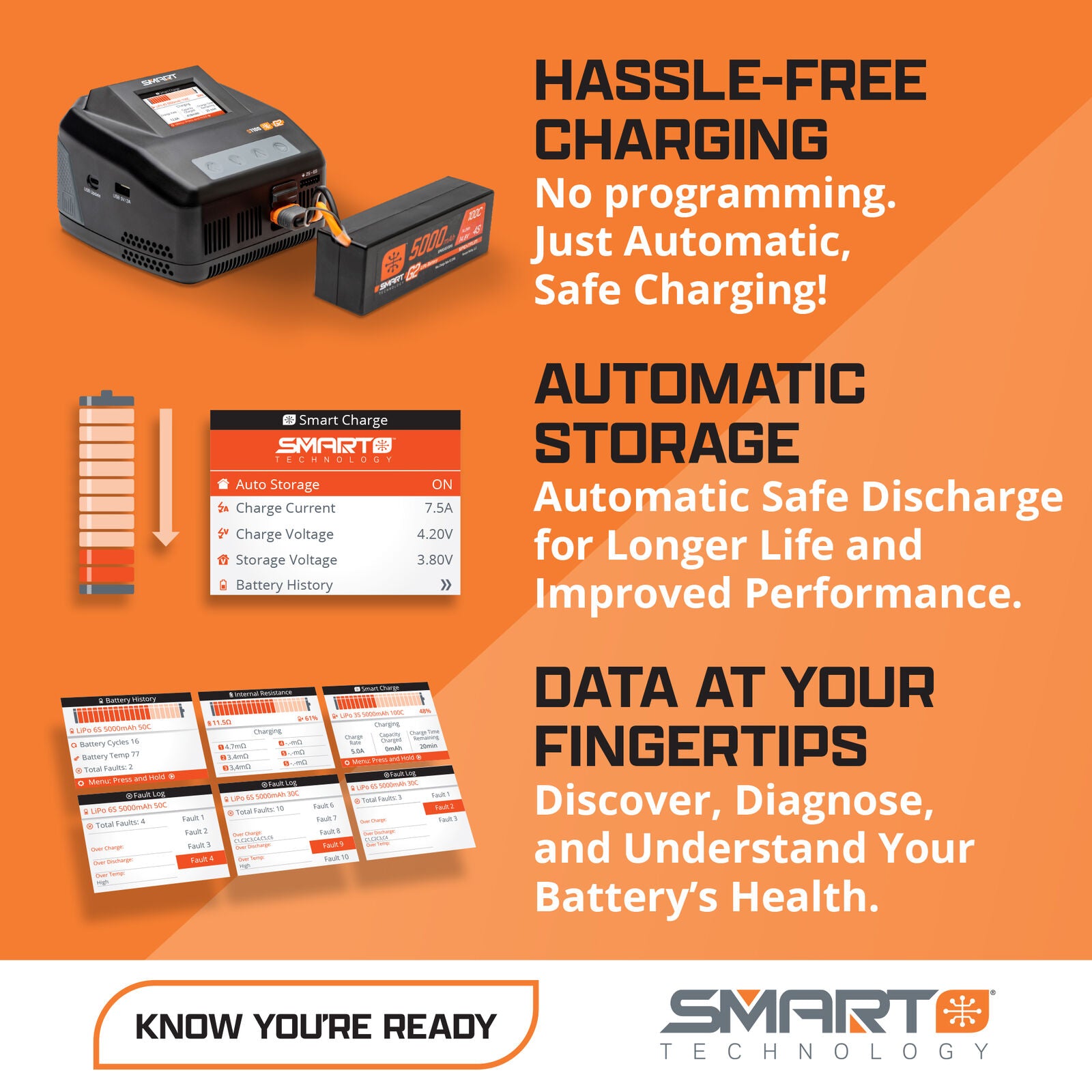 Call us at +1 (681) 217-2032 and ask for next availibilityThis Spektrum Smart Powerstage bundle is the perfect fit for ARRMA® BLX GROMs, with everything you need to get powered up for adventure. The Spektrum™ S100 Smart USB-C Charger brings today's most advanced and user-friendly charging technology to RC drivers and pilots of all skill levels. Matched with the included Spektrum 65W Power Supply, Smart G2 LiPo Battery, and adapter, enthusiasts get incredible functionality and performance in a compact size.