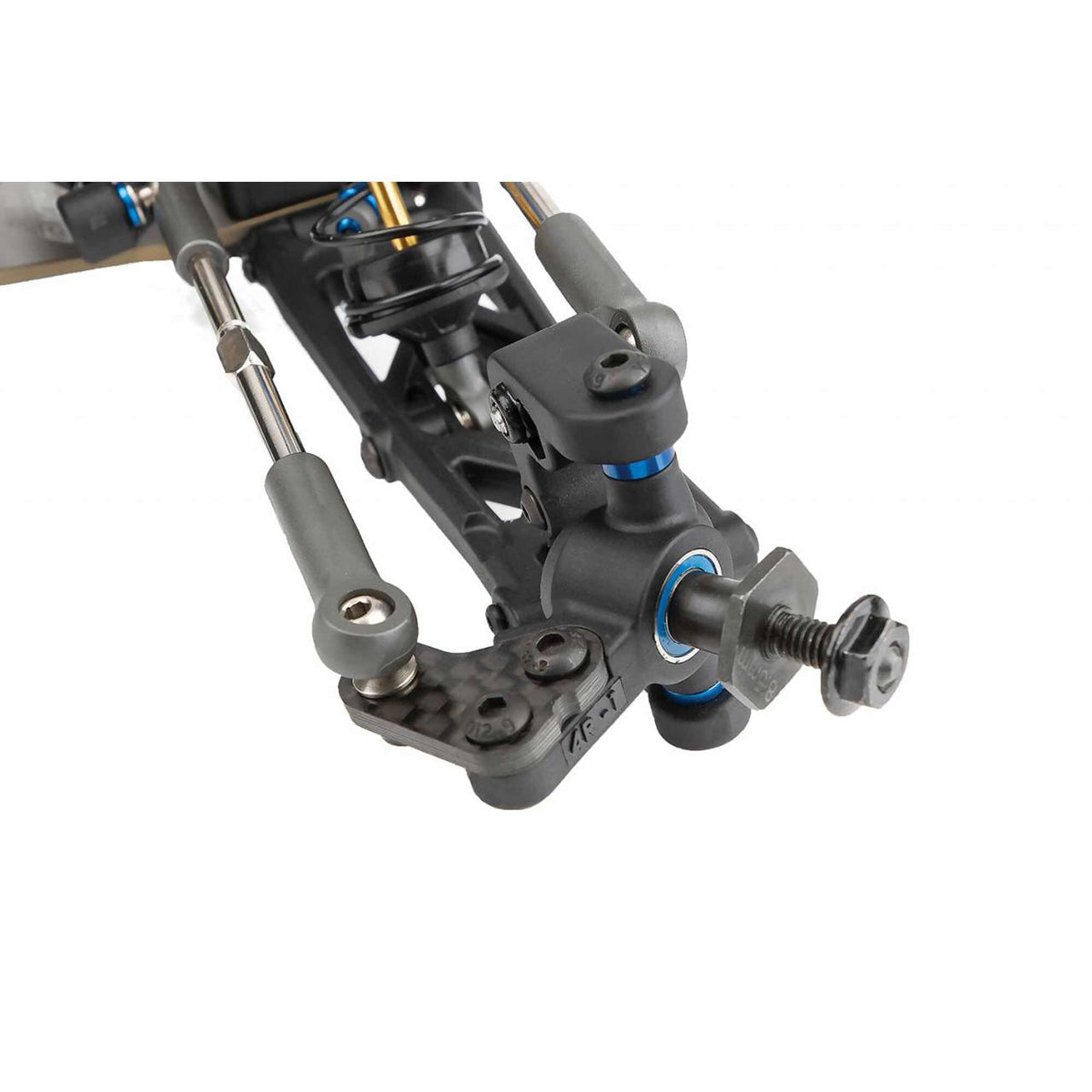 - New front ballstud mount and top plate with angled steering system for improved steering consistency.