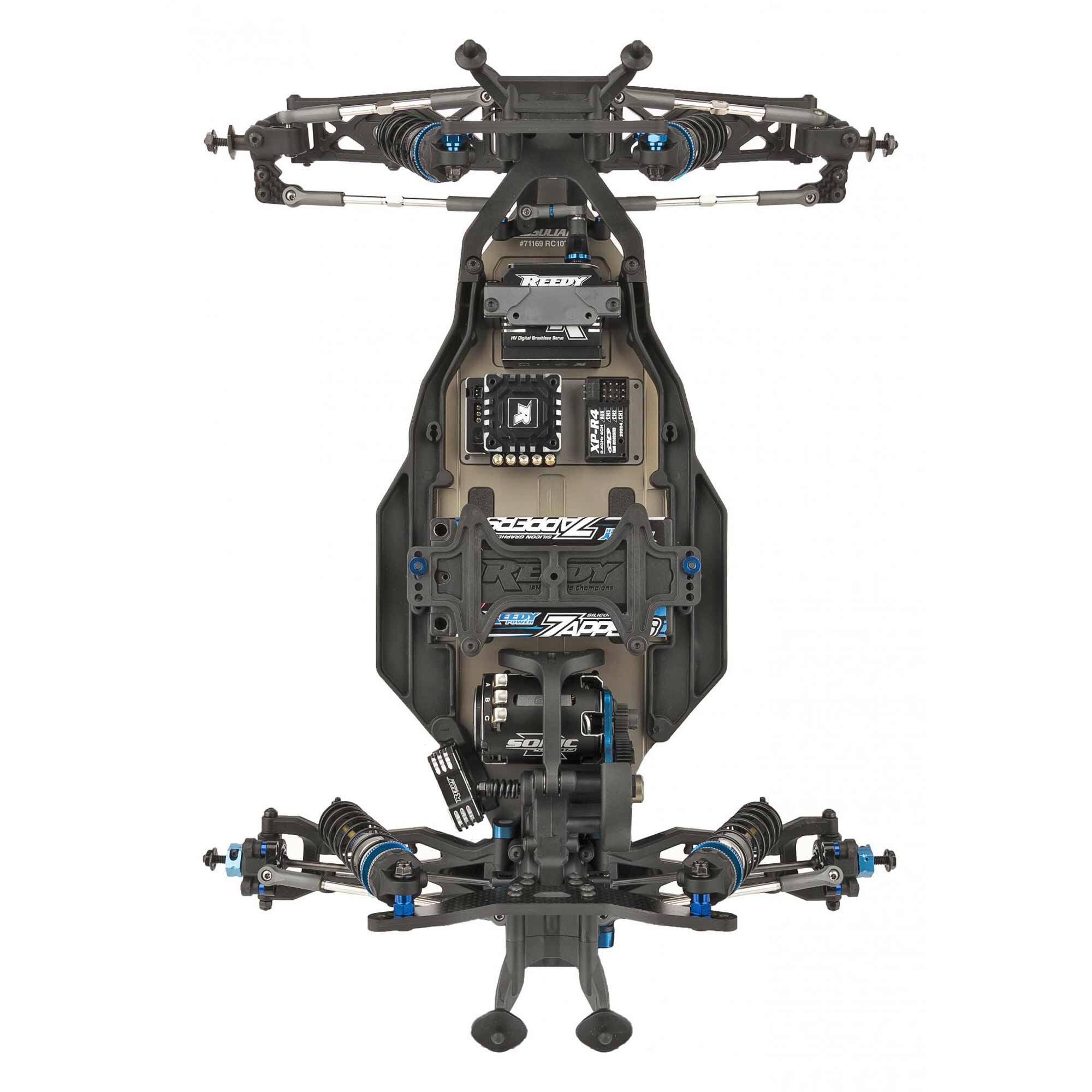 - New truck length aluminum chassis with 22.5° kick-up to complement updated front-end geometry and with new shape to reduce chassis scrub with the track surface.