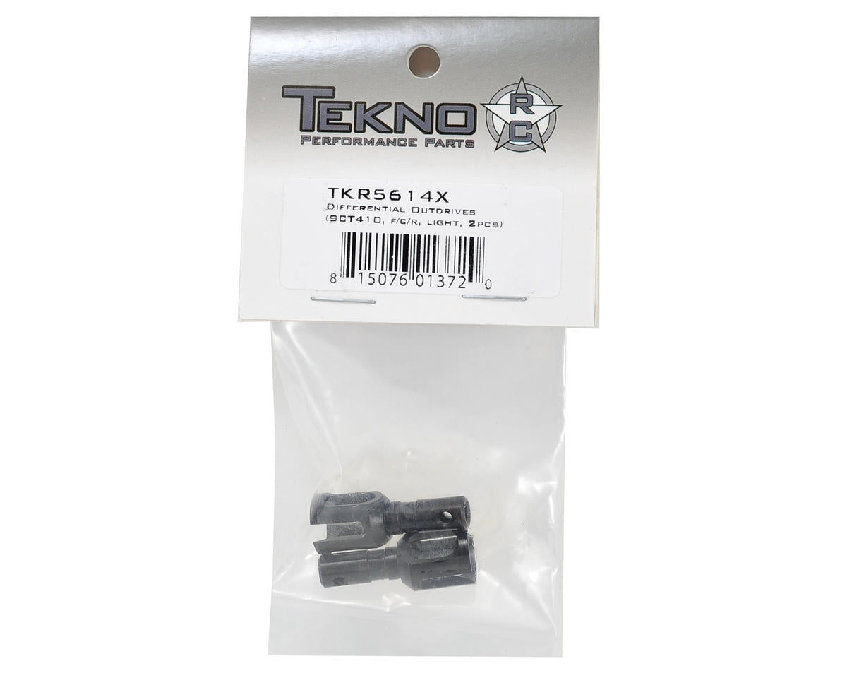 This is a replacement Tekno RC Lightened Hardened Steel Differential Outdrive Set, and is intended for use with the Tekno RC SCT410 4wd Short Course Truck. CNC machined from hardened steel and lightened for the ultimate combo of weight and durability, they will save 11 grams of rotating mass. These can be used in either the front, center or rear position. Package includes two outdrives.