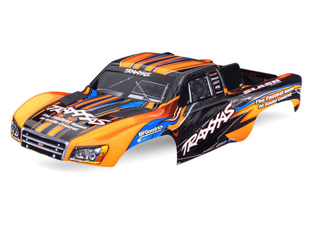 Body, Slash® 2WD (also fits Slash® VXL & Slash® 4X4), orange (painted, decals applied) (assembled with front & rear latches for clipless mounting)