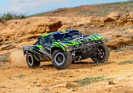 MODEL 58334-4: Slash 2WD BL-2s: 1/10 scale short course truck, fully-assembled with factory-installed Extreme HD components, waterproof electronics, Ready-To-Race®, with TQ™ 2.4 GHz 2-channel radio system, BL-2s™ brushless power system, and clipless painted body. Requires: battery and charger.