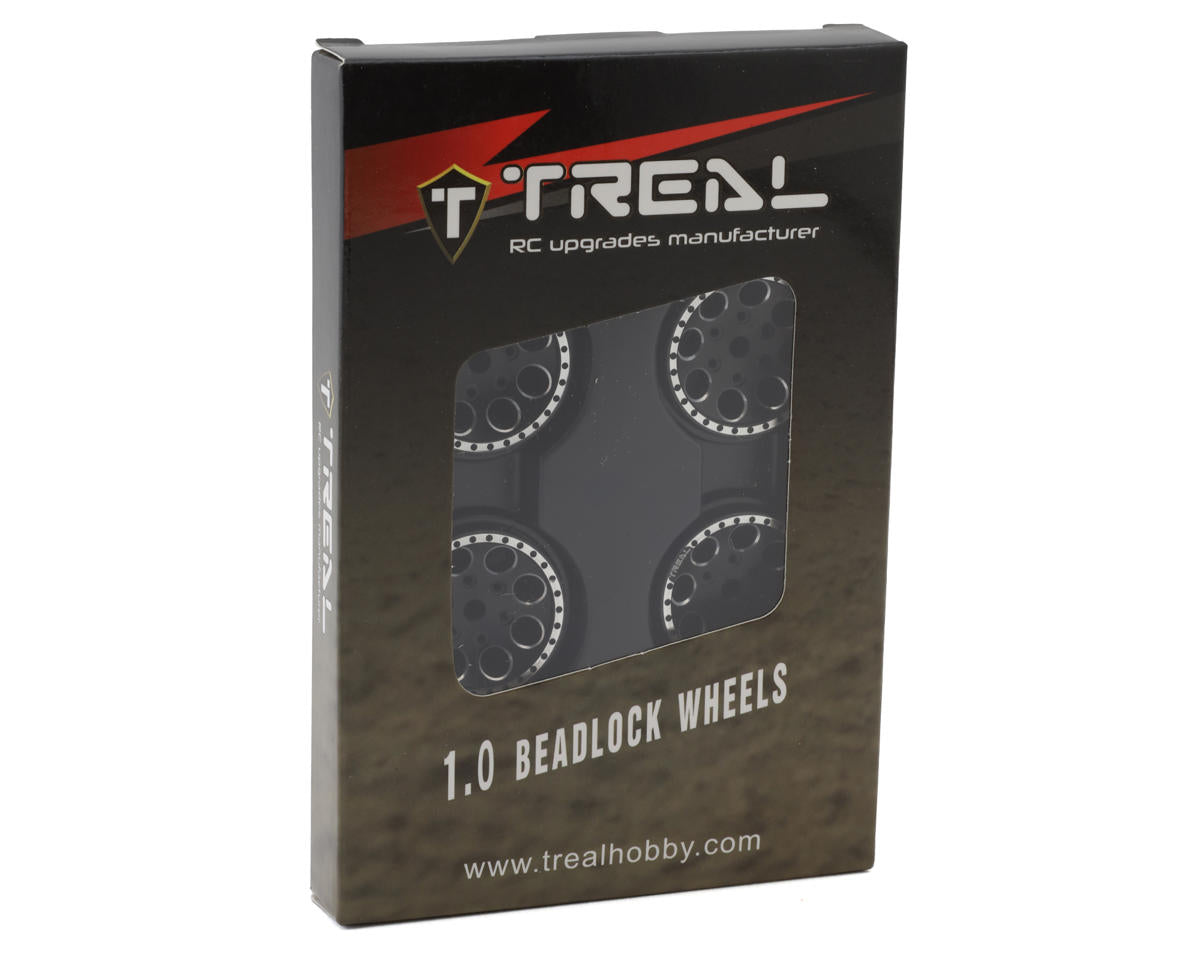 Call us at +1 (681) 217-2032 and ask for next availibilityTreal Hobby 1.0" 8-Hole Beadlock Wheels. Constructed from top quality CNC machined aluminum with interchangeable brass center rings, These optional beadlock rims are intended for 1/24 and 1/18 Scale rock crawlers to enhance scale realism, style, durability and performance! Features a scale 8-Hole rim with an easy to mount beadlock design. In addition, multiple colors are available to choose from allowing you to customize the look and style of your rig all while adding 88g of total unsprung weight down low to improve the lower center of gravity for enhanced and more stable crawling performance!