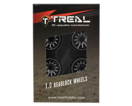 Call us at +1 (681) 217-2032 and ask for next availibilityTreal Hobby Type I 1.0" Classic 12-Spoke Beadlock Wheels. Constructed from top quality CNC machined aluminum with interchangeable brass center rings, These optional beadlock rims are intended for 1/24 and 1/18 Scale rock crawlers to enhance scale realism, style, durability and performance! Features a scale 12-Spoke rim with an easy to mount beadlock design and removable hex hub, to use different hub types and tune your offset to your liking and driving style! In addition, multiple colors are available to choose from allowing you to customize the look and style of your rig all while adding 108.8g of total unsprung weight down low to improve the lower center of gravity for enhanced and more stable crawling performance!