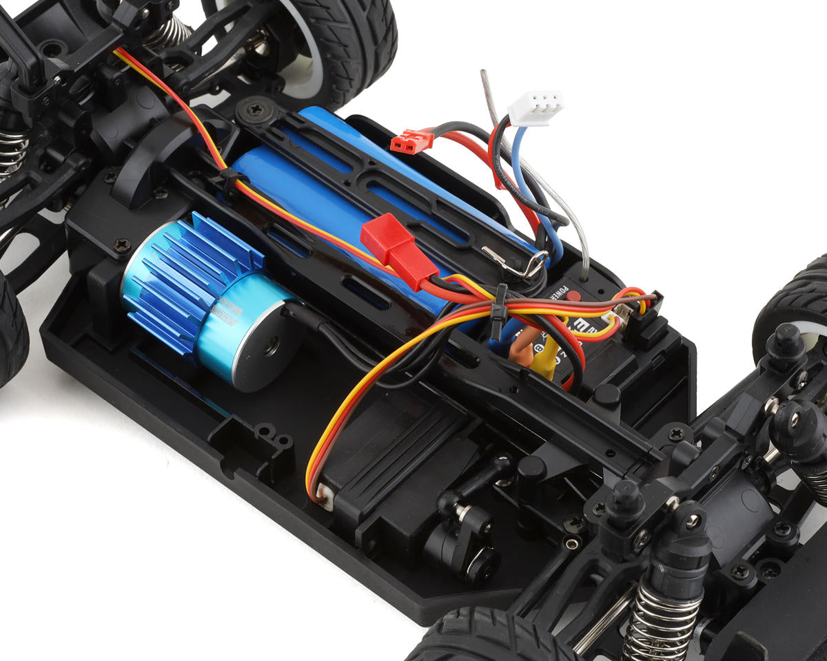 With the adjustable gyro and racing-inspired wheels and tires, maintaining control across diverse terrains becomes effortless, instilling newcomers with the confidence to embark on exciting adventures. The potent brushless motor elevates this already impressive platform to a tire-shredding beast! Additionally, the included 2S Li-Ion battery grants up to 15 minutes of non-stop action, allowing beginners ample practice and extended playtime.