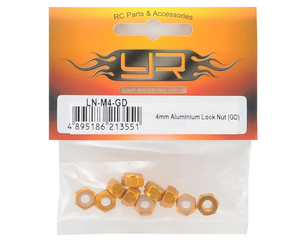 Yeah Racing 4mm Aluminum Lock Nuts are a great option when you need a light weight M4 lock nut. These are great for numerous applications, and are available in a variety of anodized colors. Package includes ten gold anodized 4mm inner diameter nylon lock nuts.